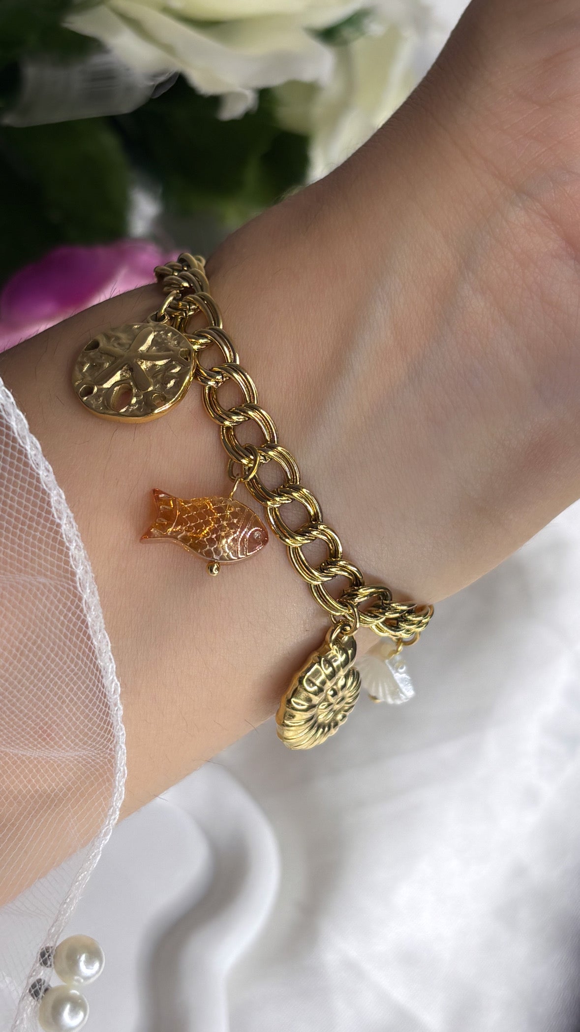 Beau bracelet aille marin en acier inoxydable couleur doré et tendance