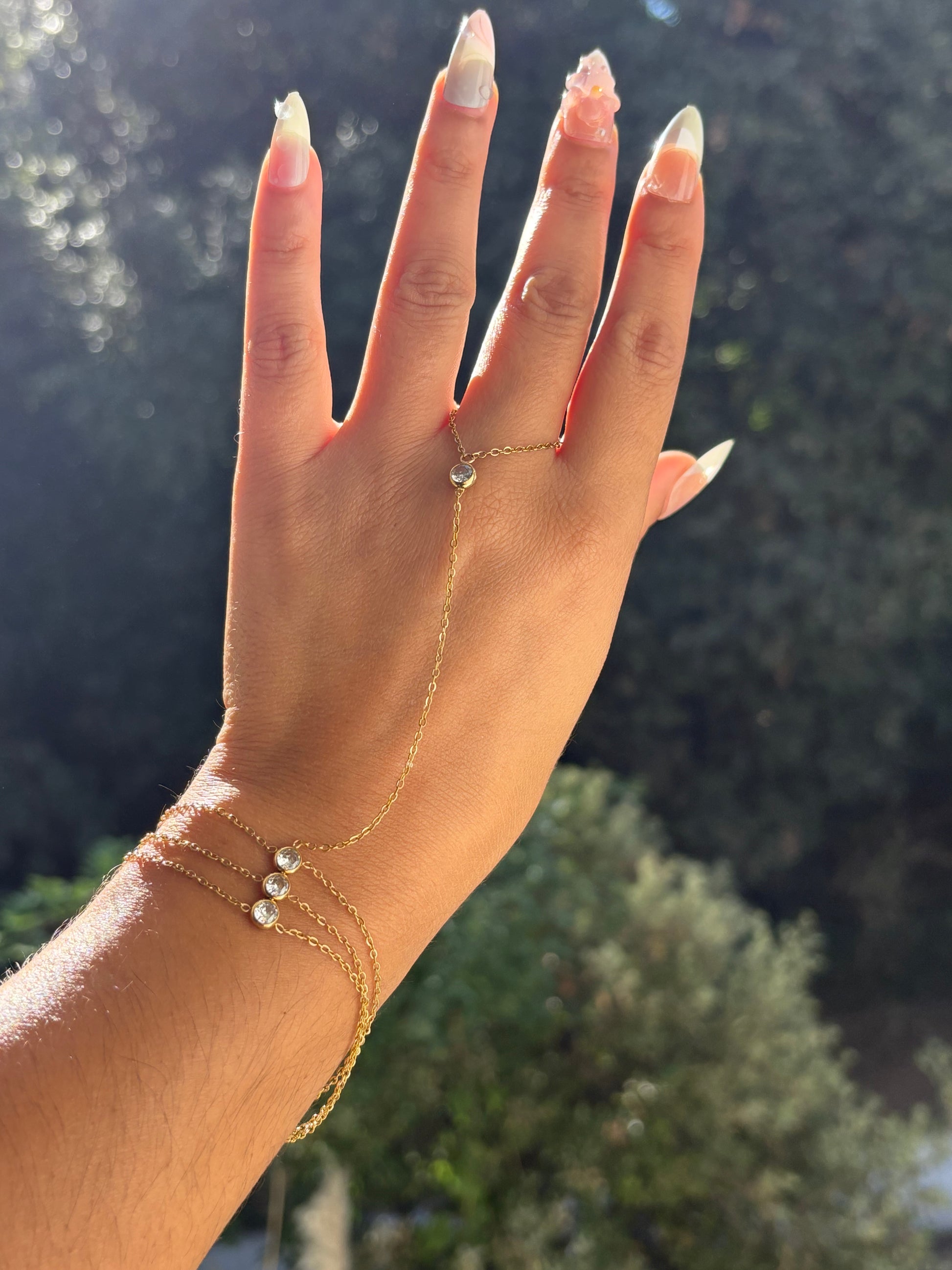 Magnifique bracelet en acier inoxydable doré et ajustable tendance multirang et strass
